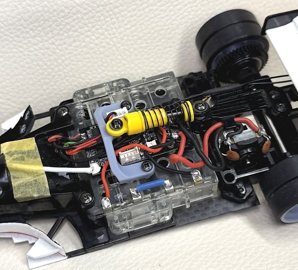ミニッツフォーミュラ(F1)のリヤにオイルダンパーを着けるためのステーとスペーサーのセットです。 ◆フェラーリのボディでしか確認できてませんので、他のボディではまらないなどの場合はご連絡ください。 RCユニットをFHSS2.4GHzに載せ替えてもコネクター部分が塞がりません。 ※画像の基板はMD211B